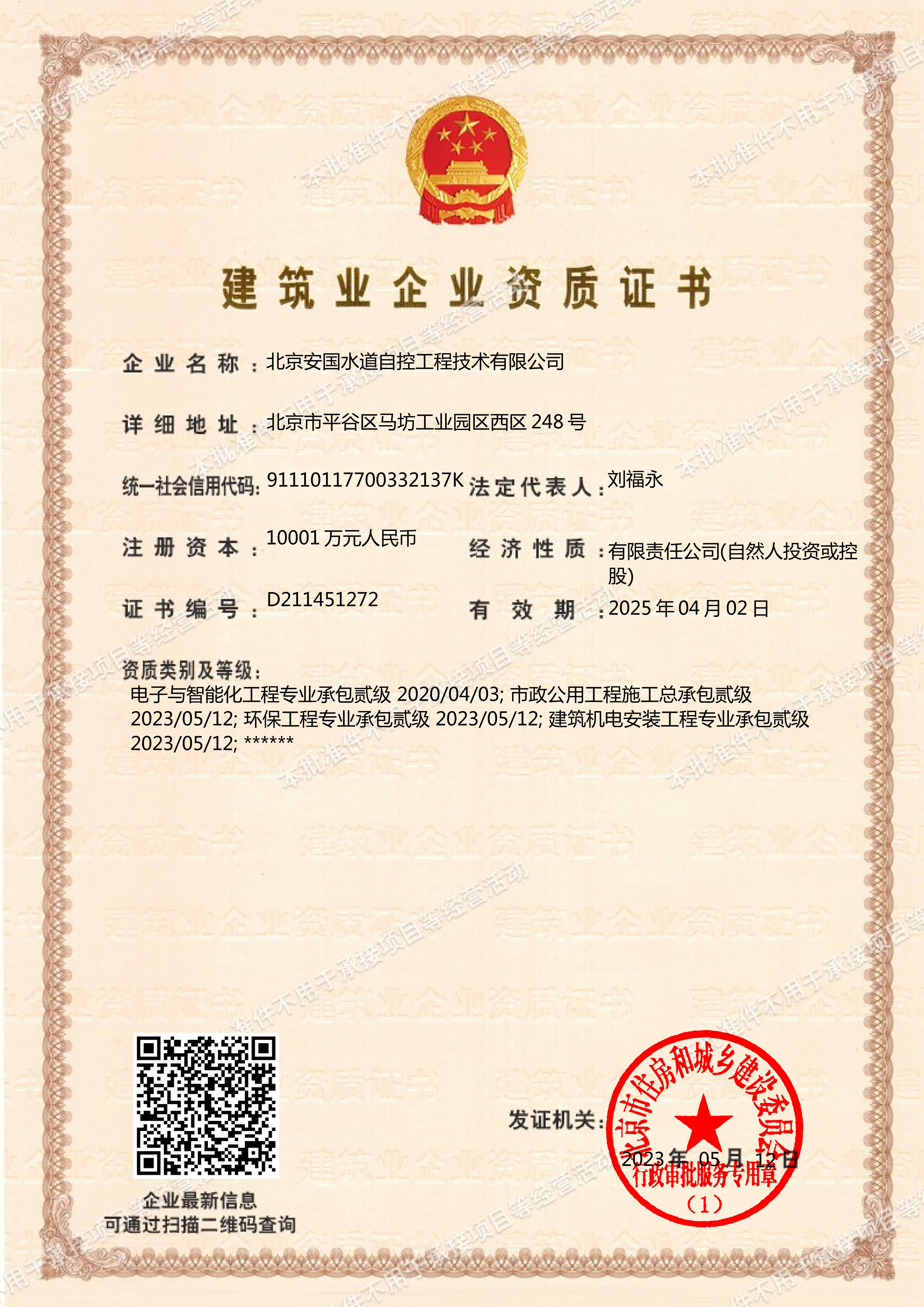 北京安國水道自控工程技術(shù)有限公司2015年入駐中國給水排水品牌委員會(huì)